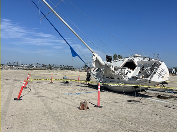 A boat came aground in Seal Beach on Feb. 11, around 4 a.m., and was removed the next day, according to Marine Safety Chief Joe Bailey. “The boat was anchored offshore, it’s anchor didn’t hold and it ended up on the beach, straight out in front of the Beach House Restaurant,” Bailey wrote. Photo courtesy of Bruce Bennet