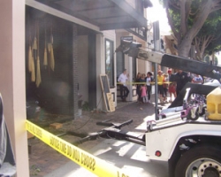 The main counter of the store was crushed under the rear wheels of a large vehicle. The car was new. It did not appear that anyone suffered life-threatening injuries. Seal Beach Police officers were on the scene minutes after employees and patrols of businesses on the 200 block of Main Street heard the crash. However, medics were called for. The Orange County Fire Authority also responded.