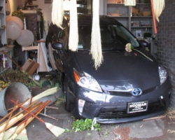 A new Toyota Prius sedan crashed backward through the storefront window of the Petals and Pop flower studio on Seal Beach Main Street in the early afternoon of Wednesday, Oct. 2. A police spokesman said no alcohol or drugs were involved. Police received the call at 12:34 p.m.