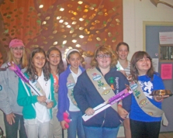 Los Alamitos Cadette Girl Scout Troop 121 recently donated supplies, blankets, and food to the Seal Beach Animal Care Center. Pictured are Madelyn Lopez, Phoebe Hoeffken, Jynel Zietz, Isabela Murray, Emily Smith, Isabella Shead, Shelter volunteer Gretchen Shegina. (Kaitlyn Shimohara not pictured but in Troop).