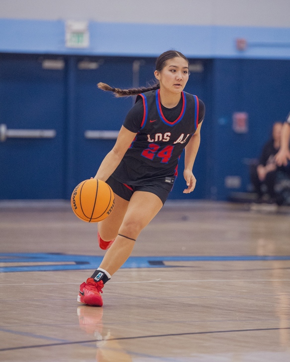 Griffin wing Torri Yoshida dribbles the ball up court in a regular season game. Photo by Troy Yoshida