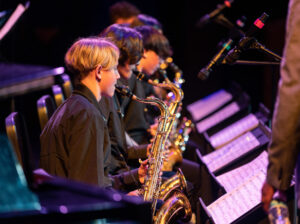 Jazz I, the largest of the night’s jazz bands, opened their set with “Old West” by Aaron Hedentrom then jumped into a new take on the old classic “Take the A Train” by Billy Strayhorn, arranged by Rich DeRosa, then performed a tune by local composer Gordon Goodwin entitled “Second Chances.”