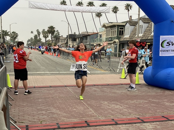 Matthew Mahue, 17, of Buena Park was the first person to cross the finish line in the 5K race at Run Seal Beach on Saturday, March 28. Mahue, who attends Los Alamitos High School, crossed the finish line on or about 8:15 a.m. and, from the look on his face, he appeared to be mighty happy.