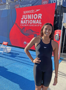 to the US Junior Nationals where she competed against swimmers from all over the United States. She finished 12th in the 200 fly with a personal best and 20th in the 100 fly against the fastest 18 and under swimmers in the US. Samantha joined the Seal Beach Swim Club at age 5 and has competed all over the world representing Seal Beach. She recently graduated from Los Alamitos High School as a straight “A” student and will be attending the University of California, Santa Barbara in the fall where she will be studying Actuary Science.